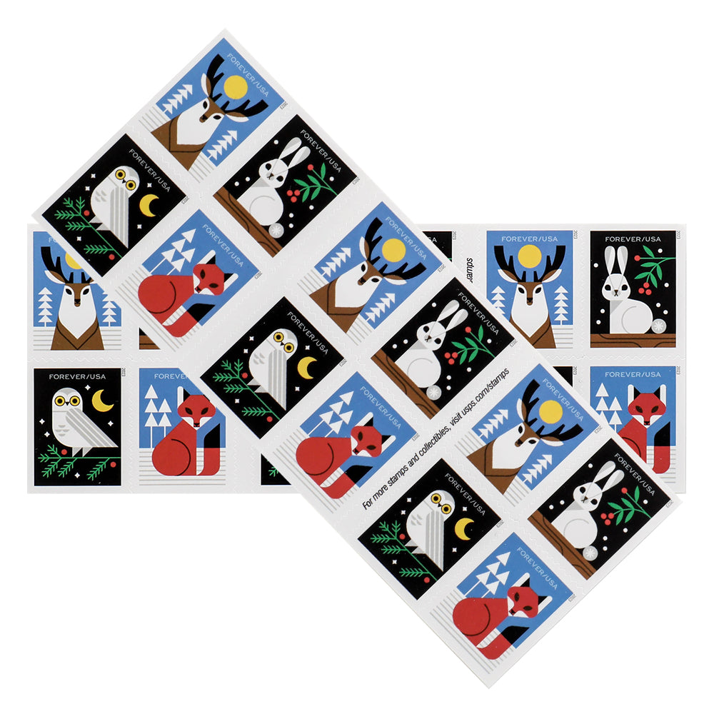 Celebrating four species that make their homes in the woodlands of North America, the new Winter Woodland Animals stamps depict deer, rabbits, owls, and foxes. The purpose is for people to connect with the natural beauty around them.